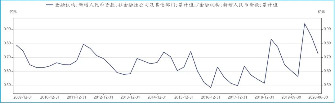 图:截至2020年6月份,70%以上的新增累计贷款流向了企业而非居民