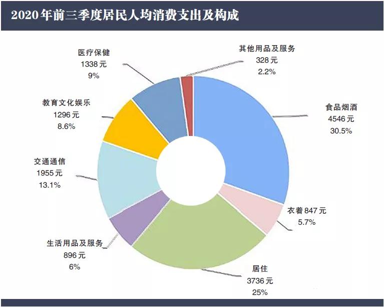 房地产作为国民经济支柱产业,无论是在投资端还是消费端,均对经济增长起到至关重要的作用。作为消费品,住房消费剔除房屋购置消费,就已经占到CPI权重的近20%,仅次于食品消费。国家统计局公布的今年前三季度居民人均消费支出构成情况显示,居住类消费支出占比达25%。